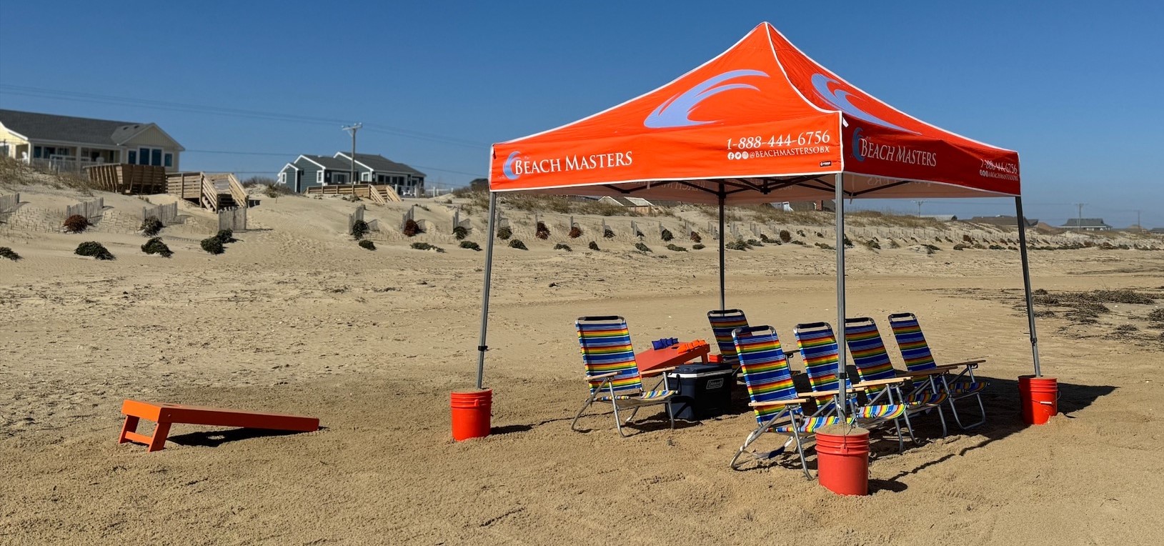 BeachMasters is the premier beach equipment rental on the Outer Banks. A masterful beach experience which includes daily set up and break down of a 10’x10′ tent with 6 beach chairs. Available from Corolla to S. Nags Head.